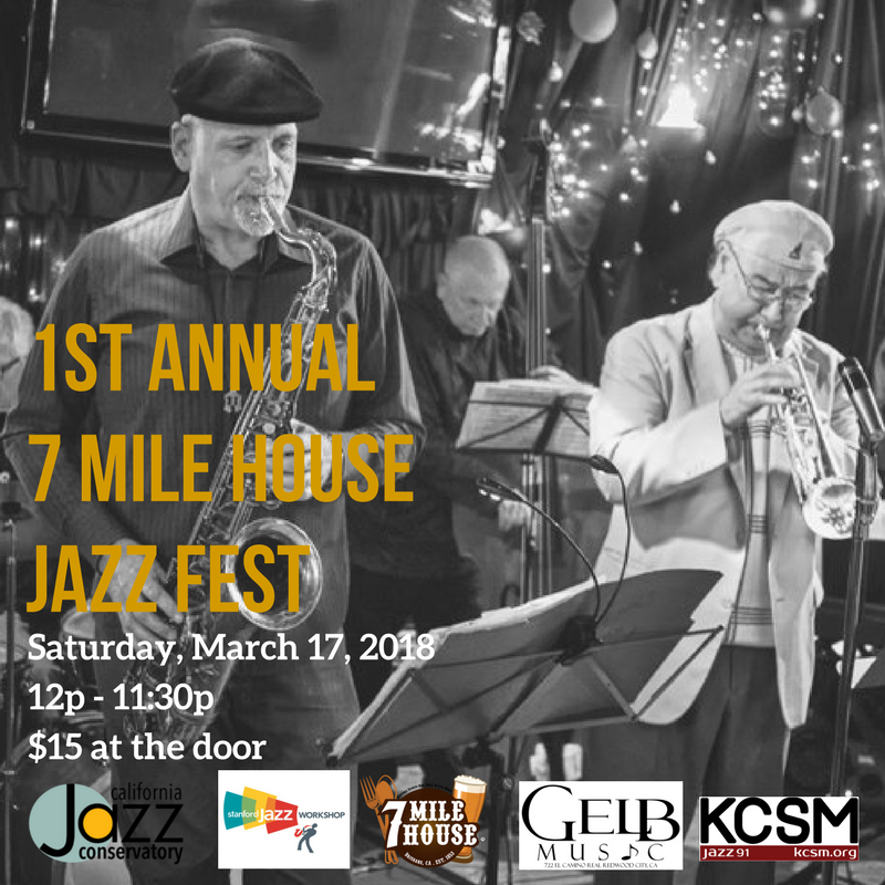 The festival is sponsored by KCSM Jazz 91, The California Jazz Conservatory, The Stanford Jazz Workshop, and Gelb Music. Featured artists are listed below, and a schedule for the festival will be announced on the 7 Mile House website (www.7milehouse.com).