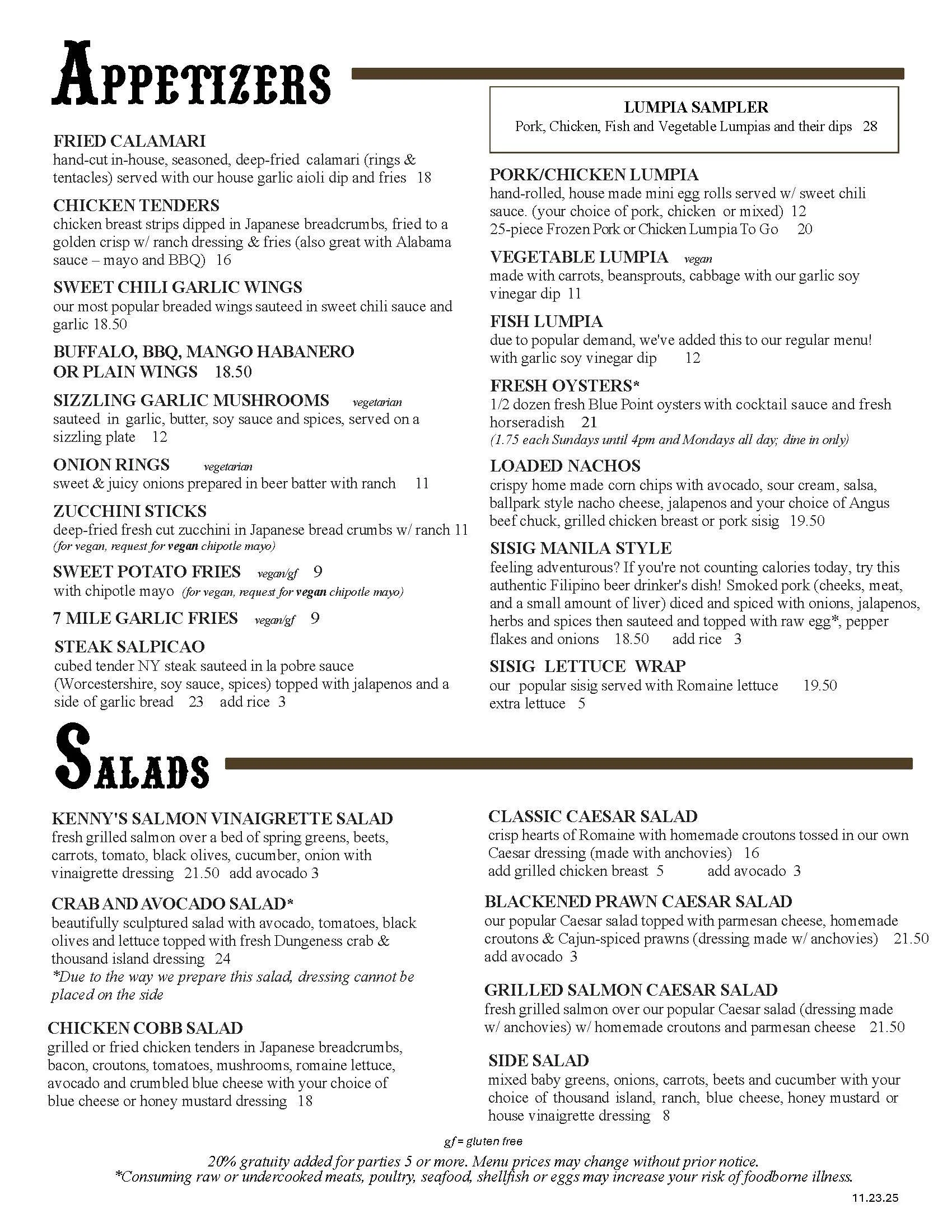 7 Mile Menu: Sandwiches, Pasta, Kids, Sides